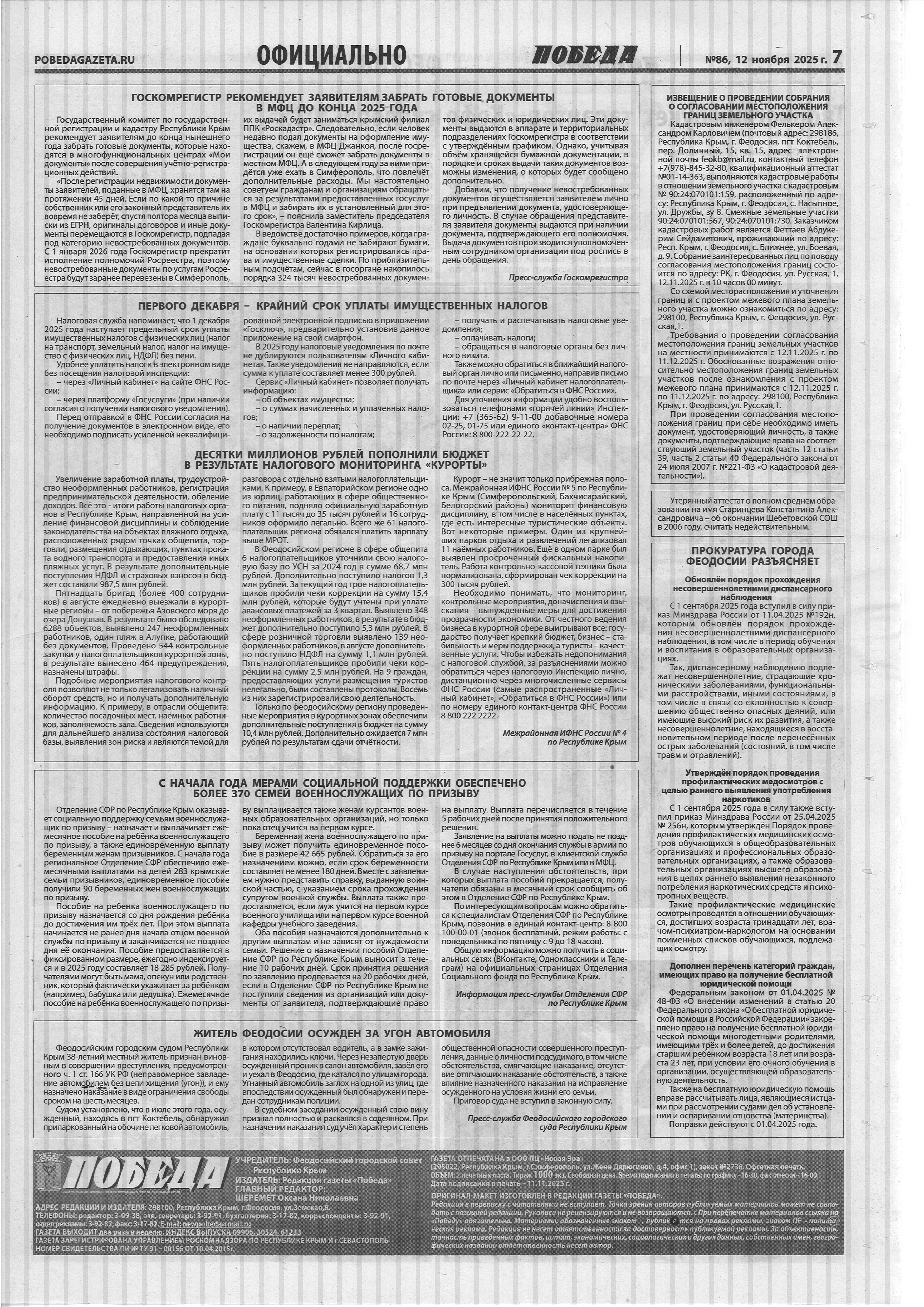Газета "Победа" №86 от 12.11.2025г.
