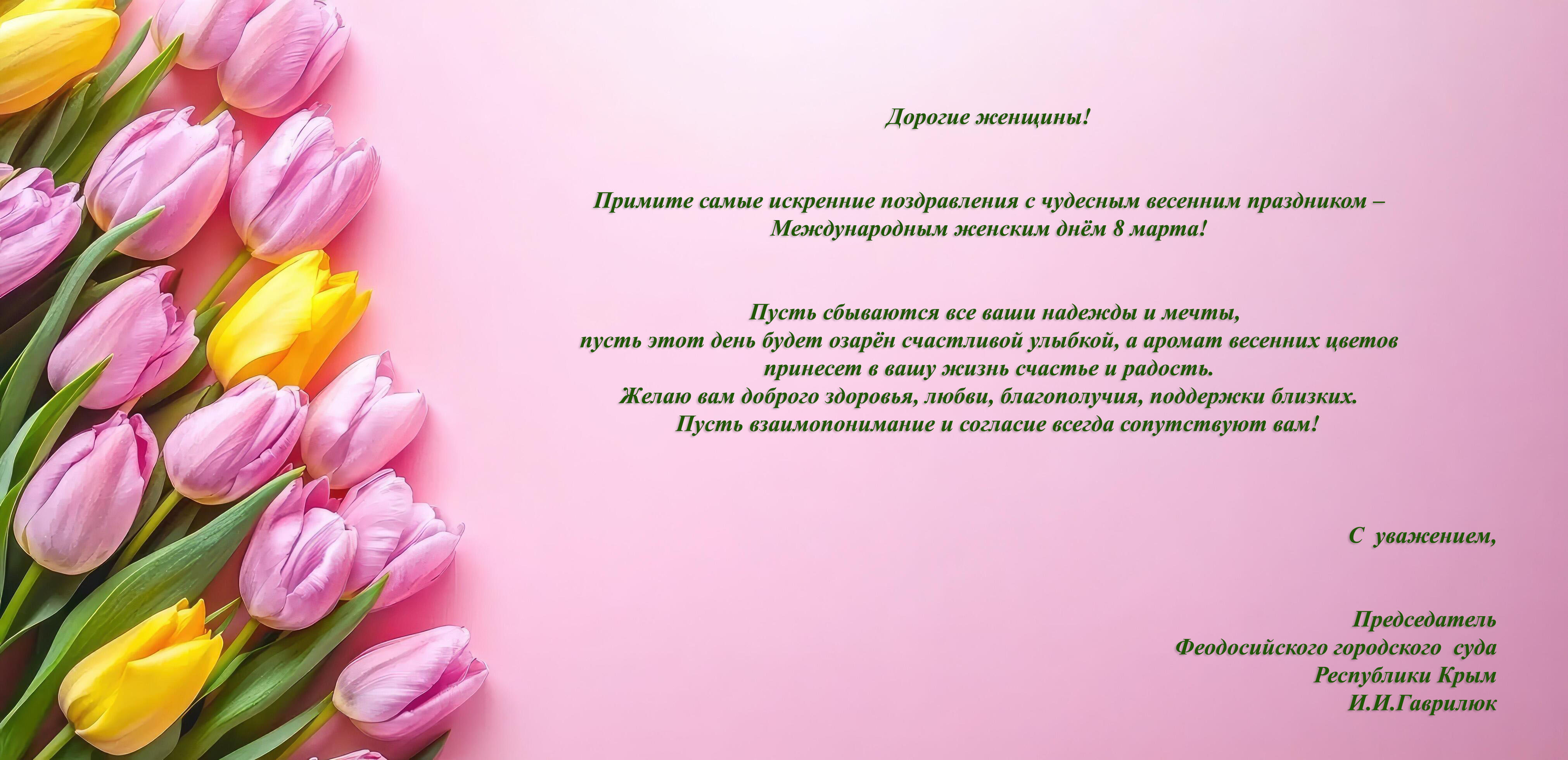 Поздравление председателя суда с наступающим праздником - Международным женским днем!
